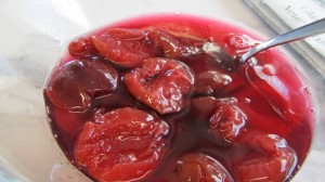 Die Kalmuswurzel in den kochenden Zuckersirup streuen und ca. 10 Minuten köcheln lassen. Das Obst hinzuftigen und fertigkochen.